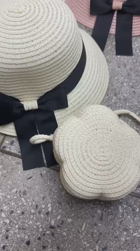 Kit infantil chapéu e bolsinha palha rosê (unidade)